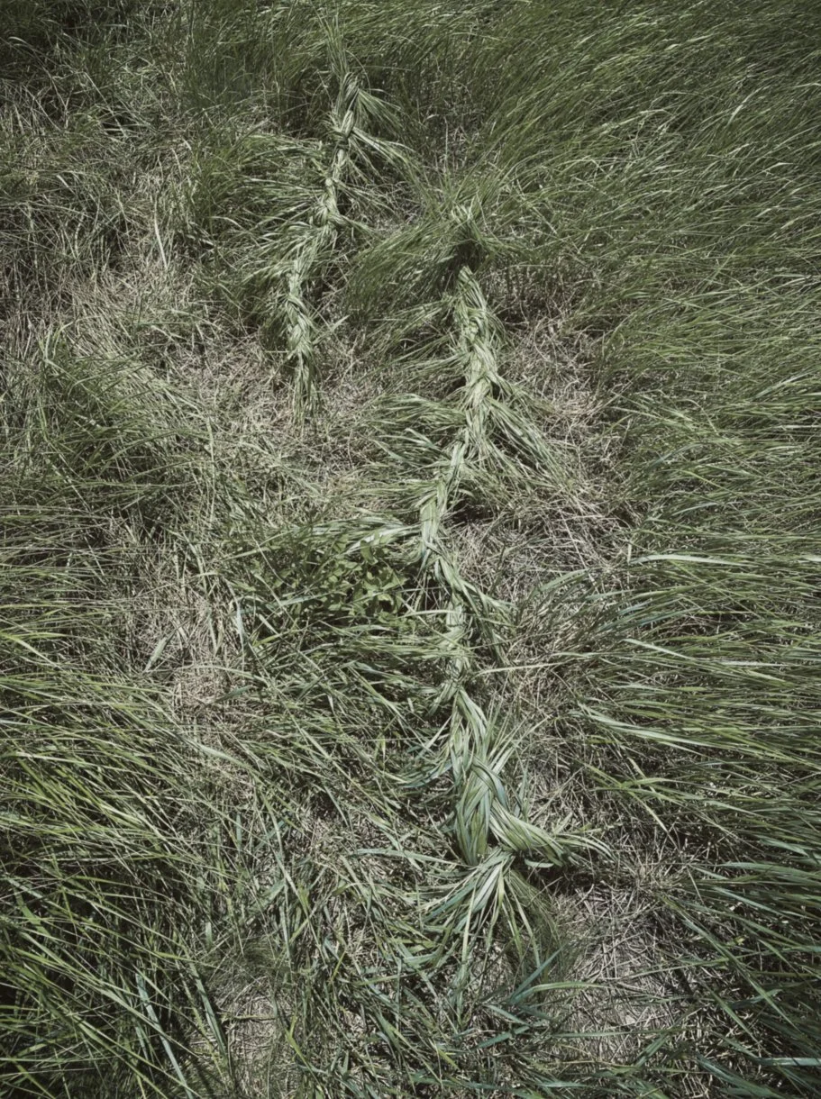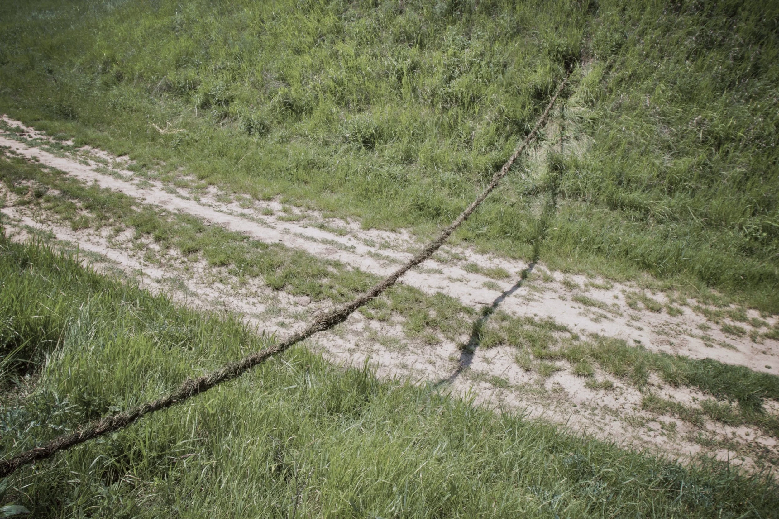 In one instance, the act of binding separate elements into a whole formed a bridge that could not be crossed- yet it functioned as a barrier, physically preventing a car from entering the monument site. In another, the woven structure revealed a path leading toward the top of the hill.